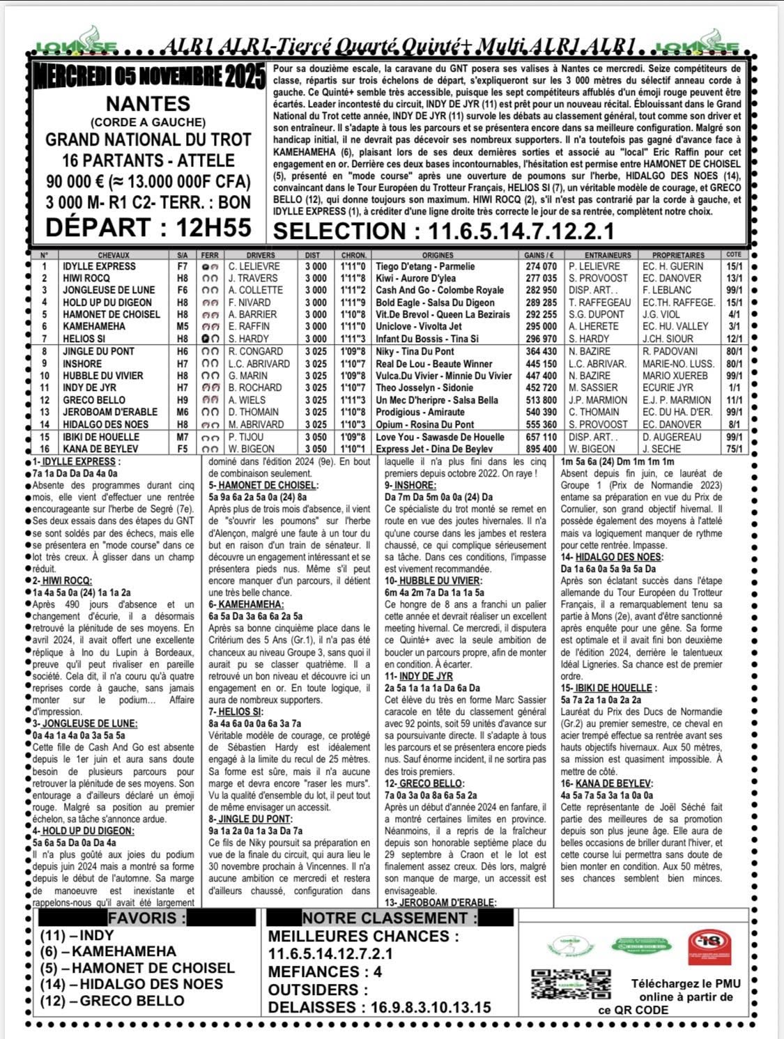 | ARRIVEE ALR1 DU 05-11-2025 : 6 - 4 - 11 - 5 - 12 cliquer ici pour voir les gains | |