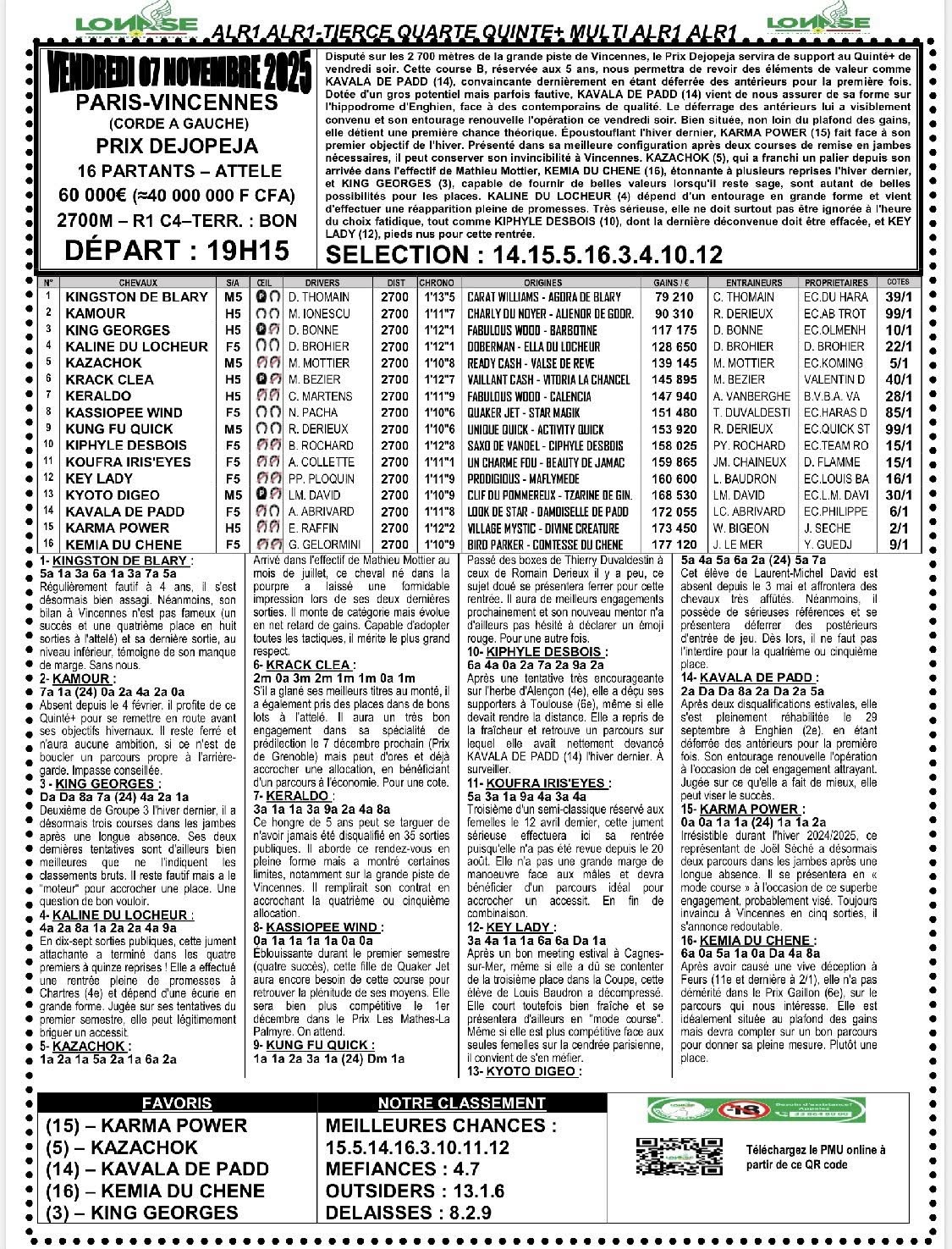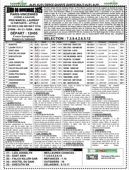 Arrivé, gain, programme et pronostic de alr1 du jour 07-11-2025 LONASE