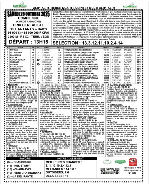 Arrivé, gain, programme et pronostic de alr1 du jour 25-10-2025 LONASE