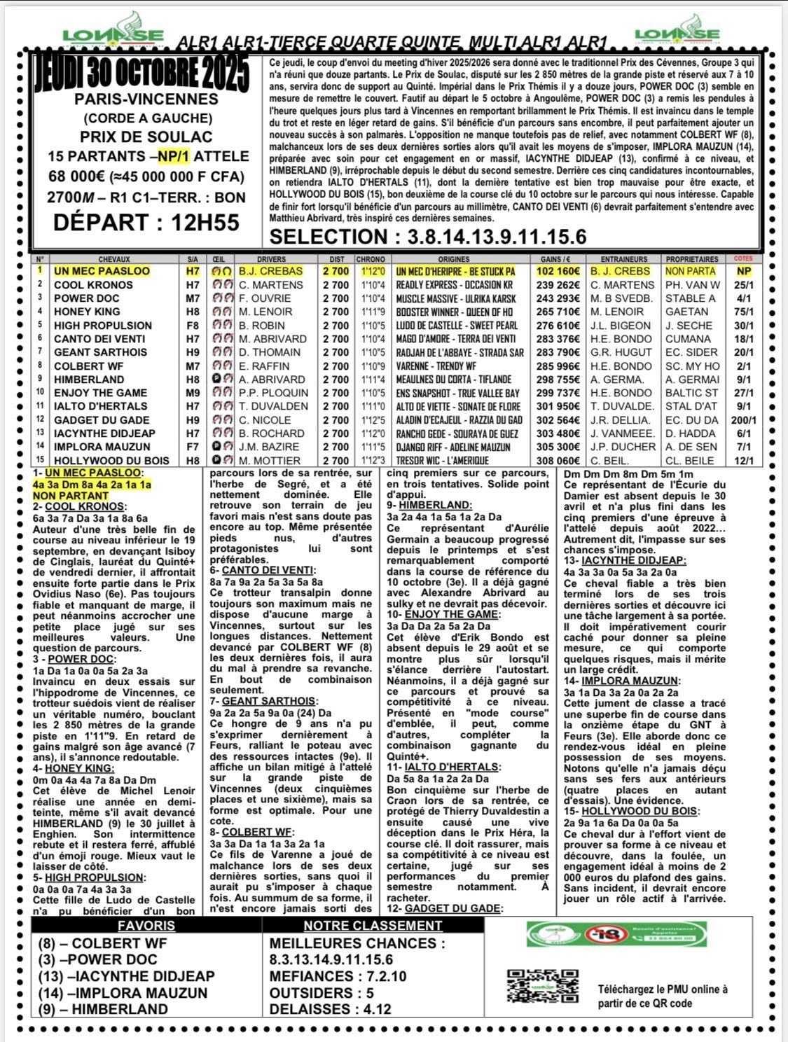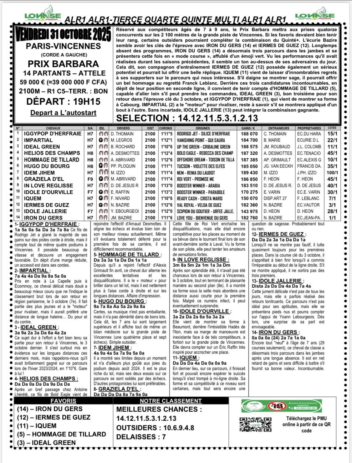 Arrivé, gain, programme et pronostic de alr1 du jour 30-10-2025 LONASE