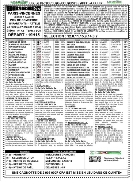 Arrivé, gain, programme et pronostic de alr1 du 25-12-2025