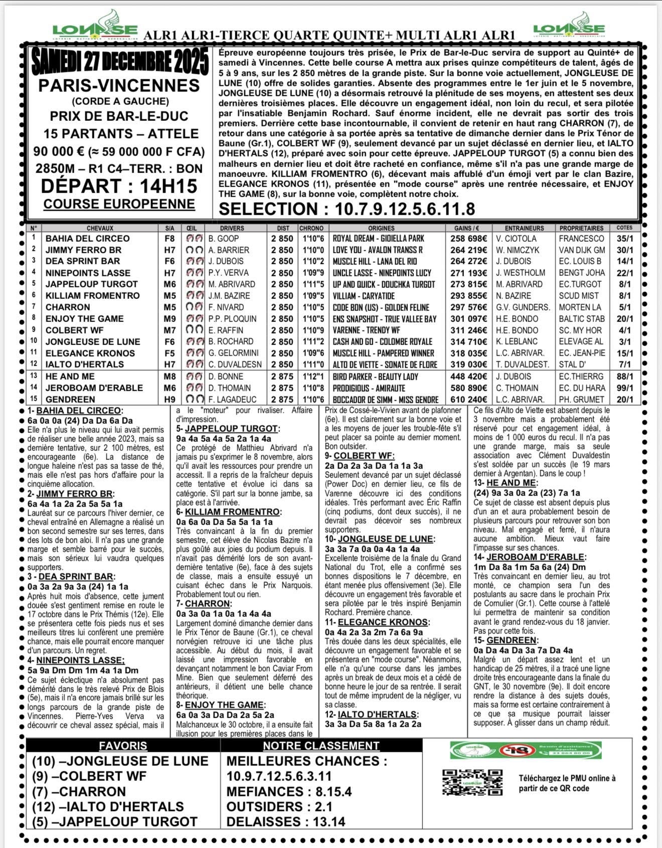 Arrivée alr1 du 27-12-2025 : 12-4-10-15-11