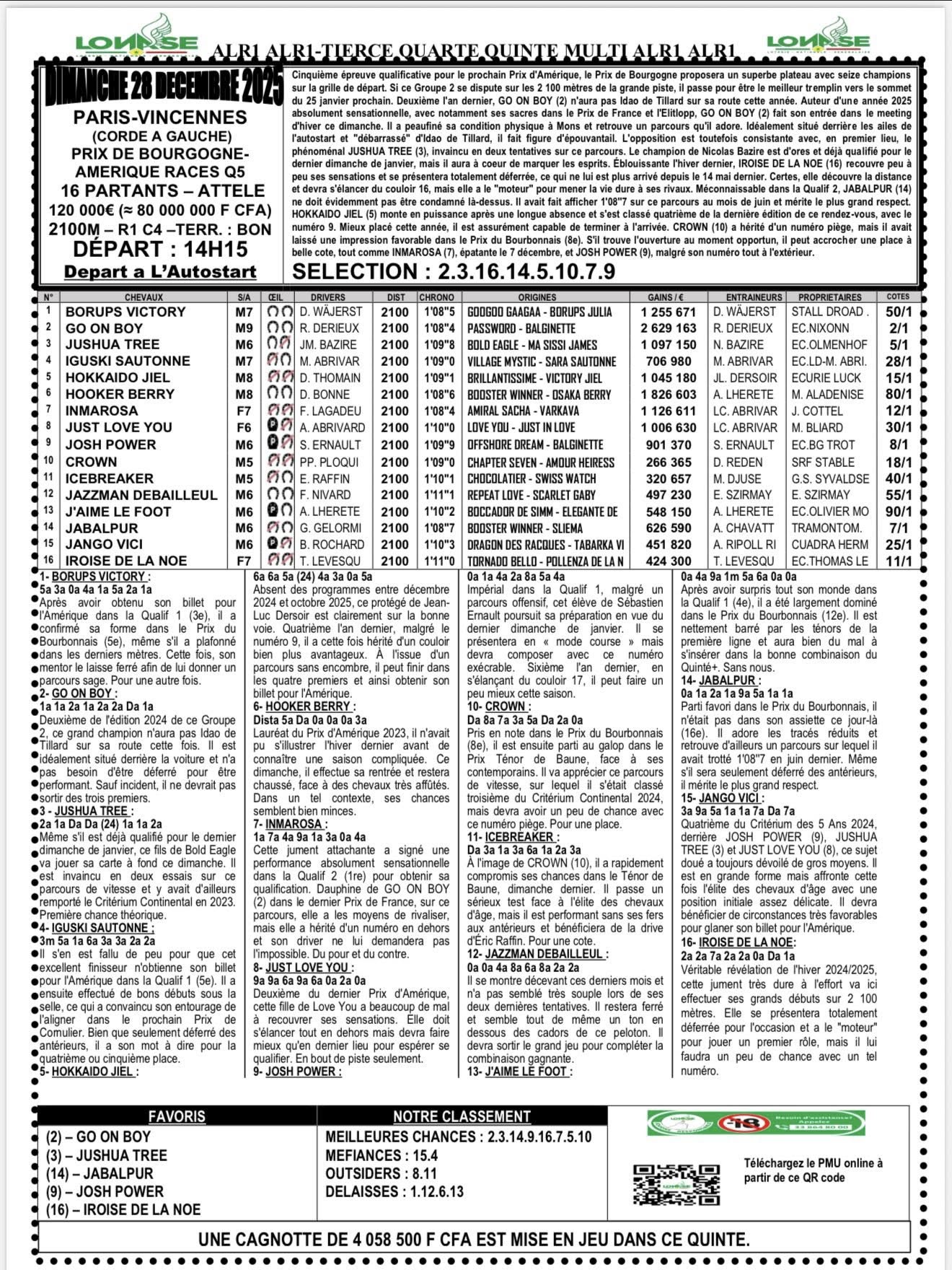 Arrivé, gain, programme et pronostic de alr1 du 27-12-2025