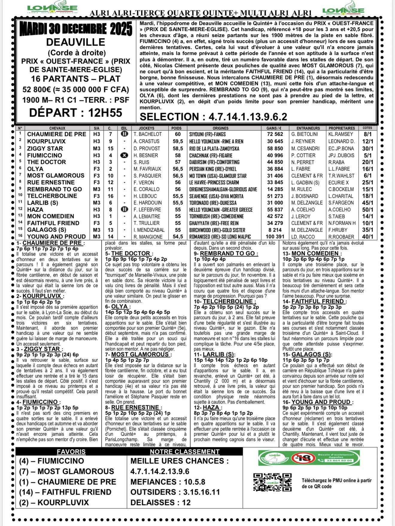 | ARRIVEE ALR1 DU 30-12-2025 : 2 - 9 - 12 - 10 - 1 cliquer ici pour voir les gains | |