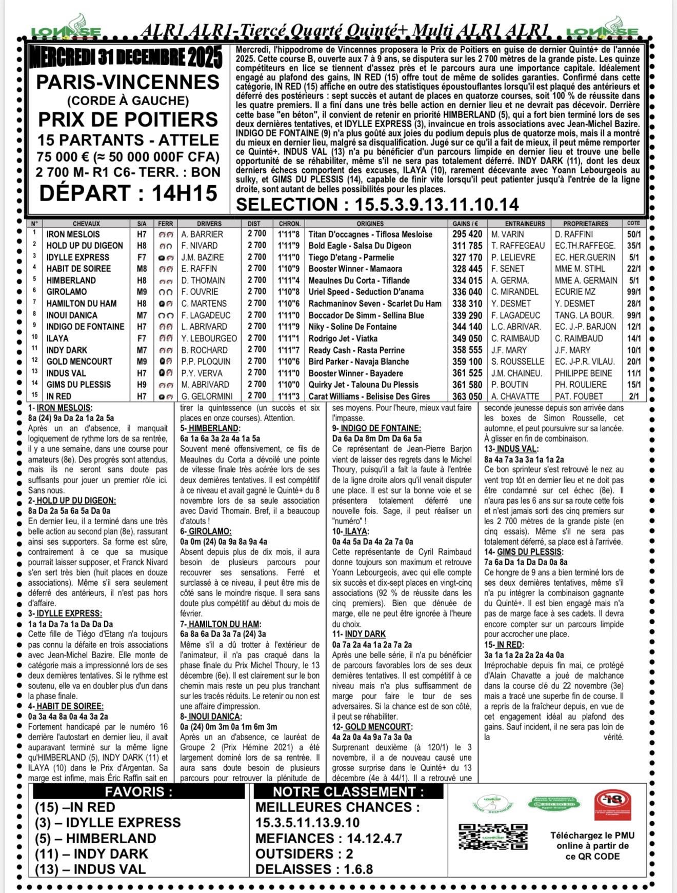 | ARRIVEE ALR1 DU 31-12-2025 : 3 - 9 - 7 - 13 - 15 cliquer ici pour voir les gains | |