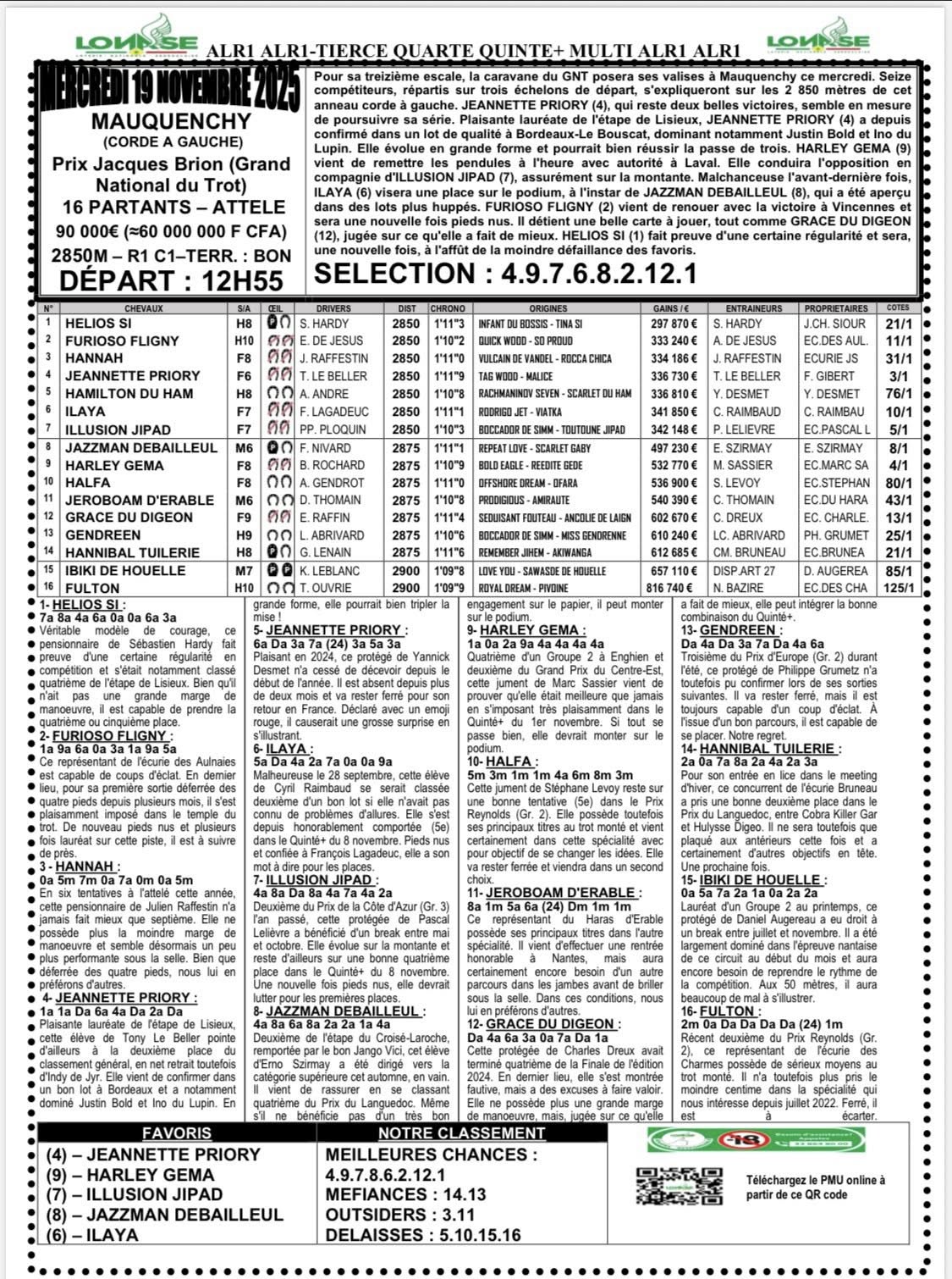 | ARRIVEE ALR1 DU 18-11-2025 : 12 - 6/8 - 11 - 10 cliquer ici pour voir les gains | |