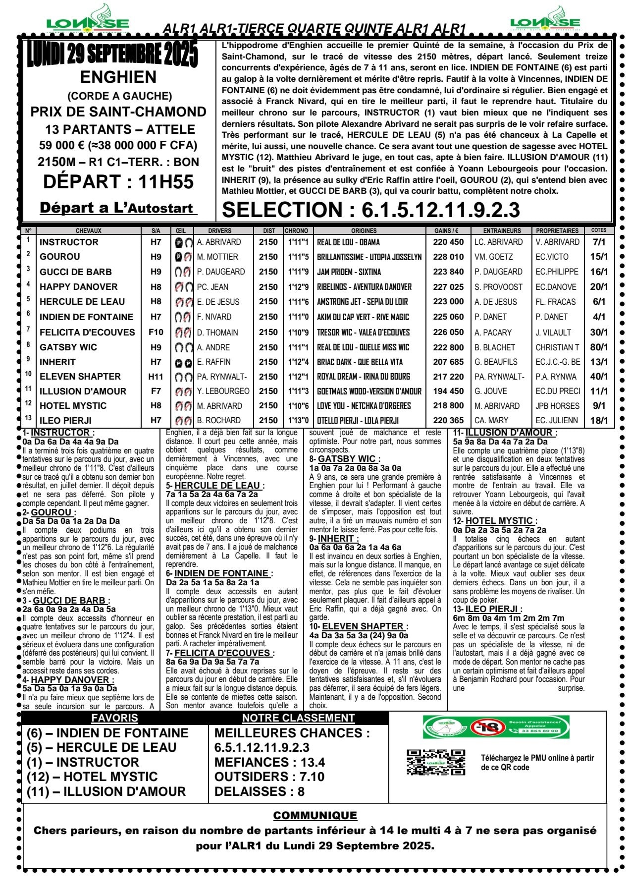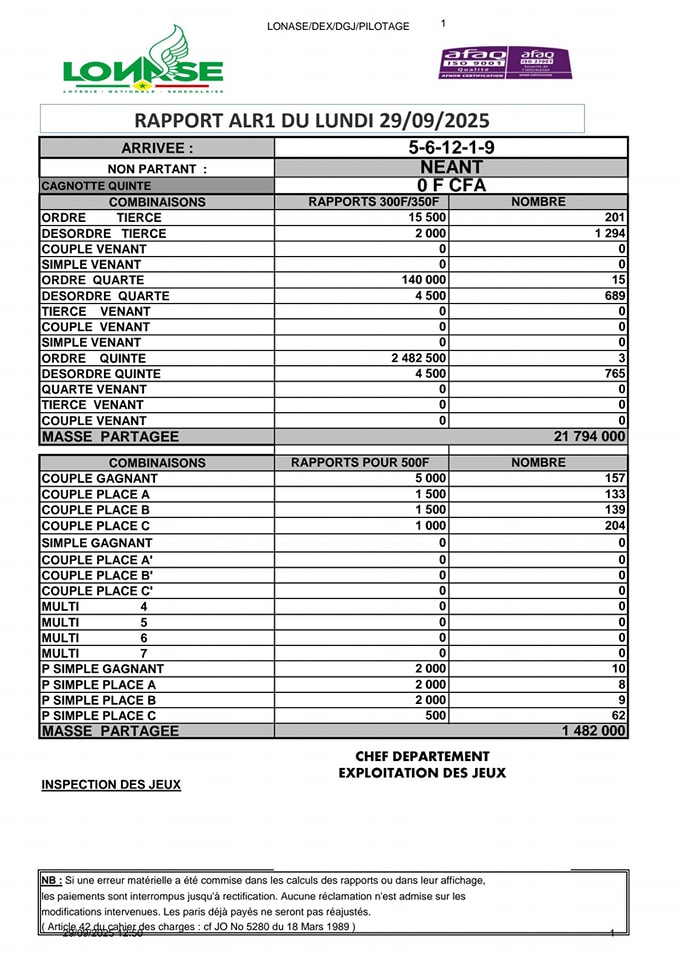 ARRIVEE ALR1 DU 29-09-2025 : 5 - 6 - 12 - 1 - 9 cliquer ici pour voir les gains | |