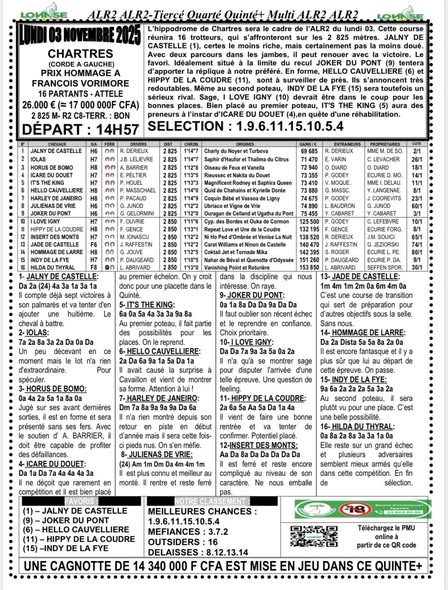 | ARRIVEE ALR2 DU 03-11-2025 : 10-15-1-2-7 cliquer ici pour voir les gains | |