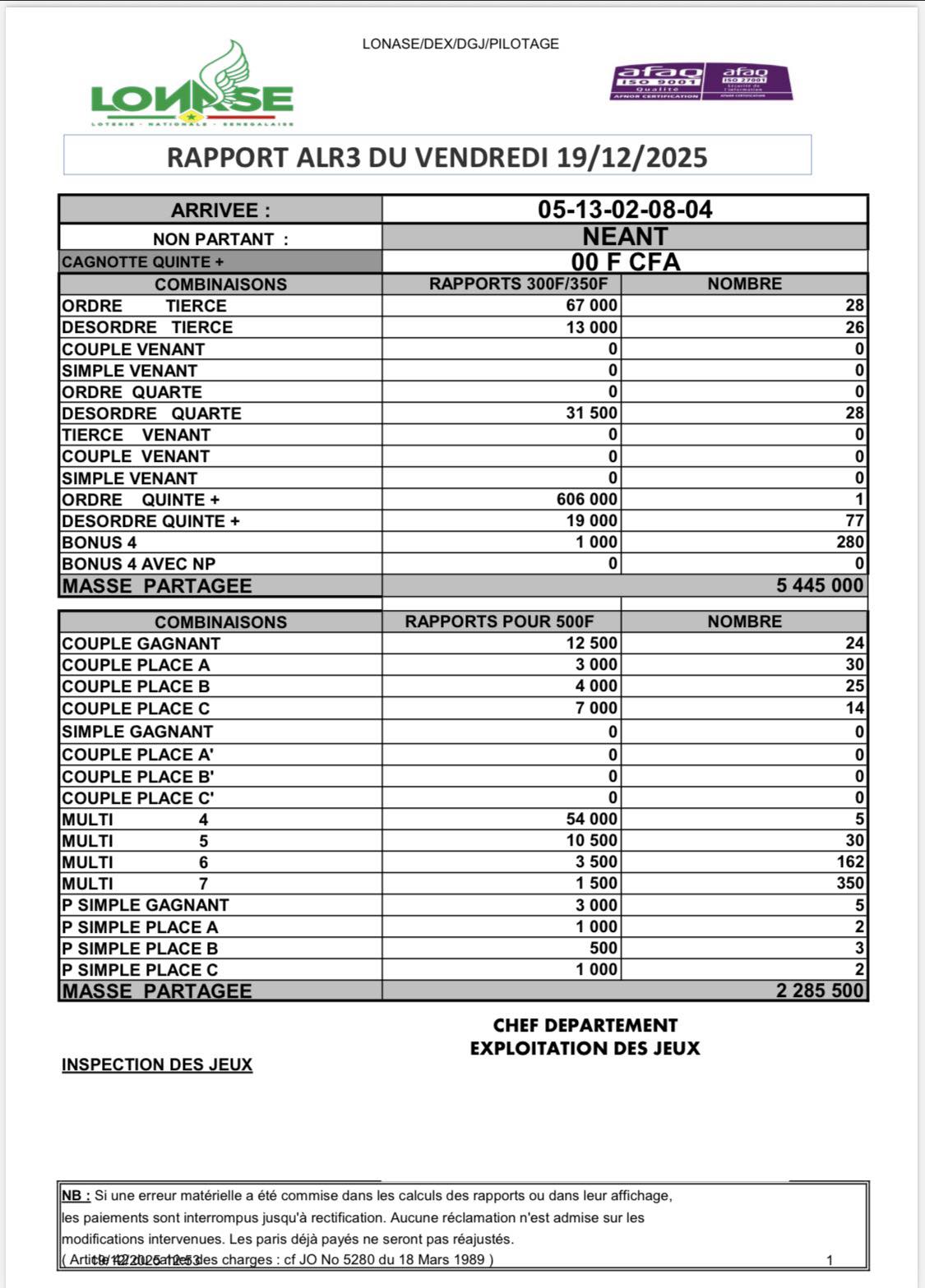 | ARRIVEE ALR3 DU 20-12-2025 : cliquer ici pour voir les gains | |