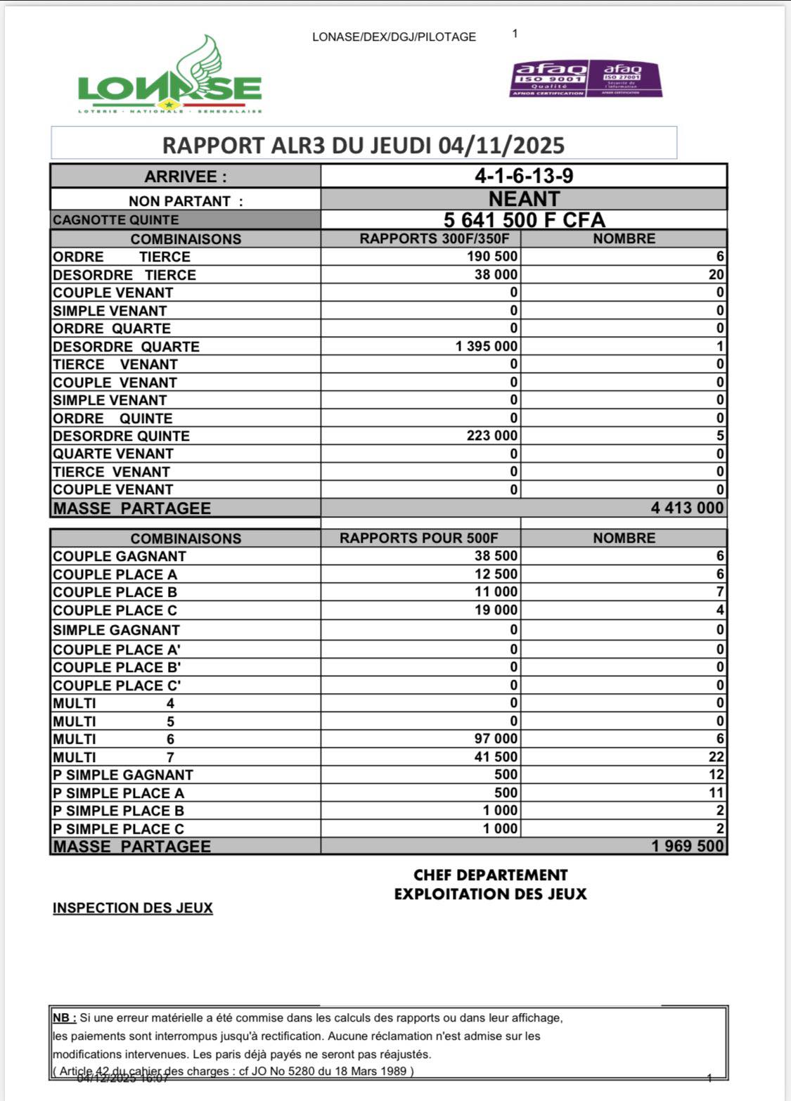 | ARRIVEE ALR3 DU 04-12-2025 : 4-1-6-13-9 cliquer ici pour voir les gains | |