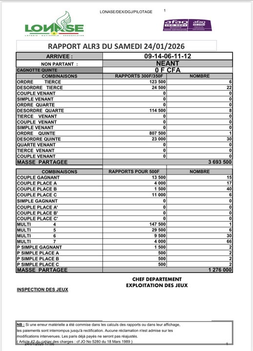 | ARRIVEE ALR3 DU 24-01-2026 : 9-14-6-11-12 cliquer ici pour voir les gains | |