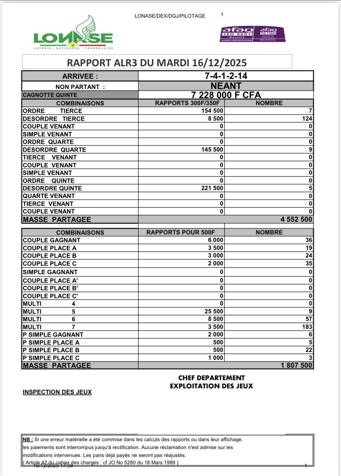 | ARRIVEE ALR3 DU 14-12-2025 : cliquer ici pour voir les gains | |