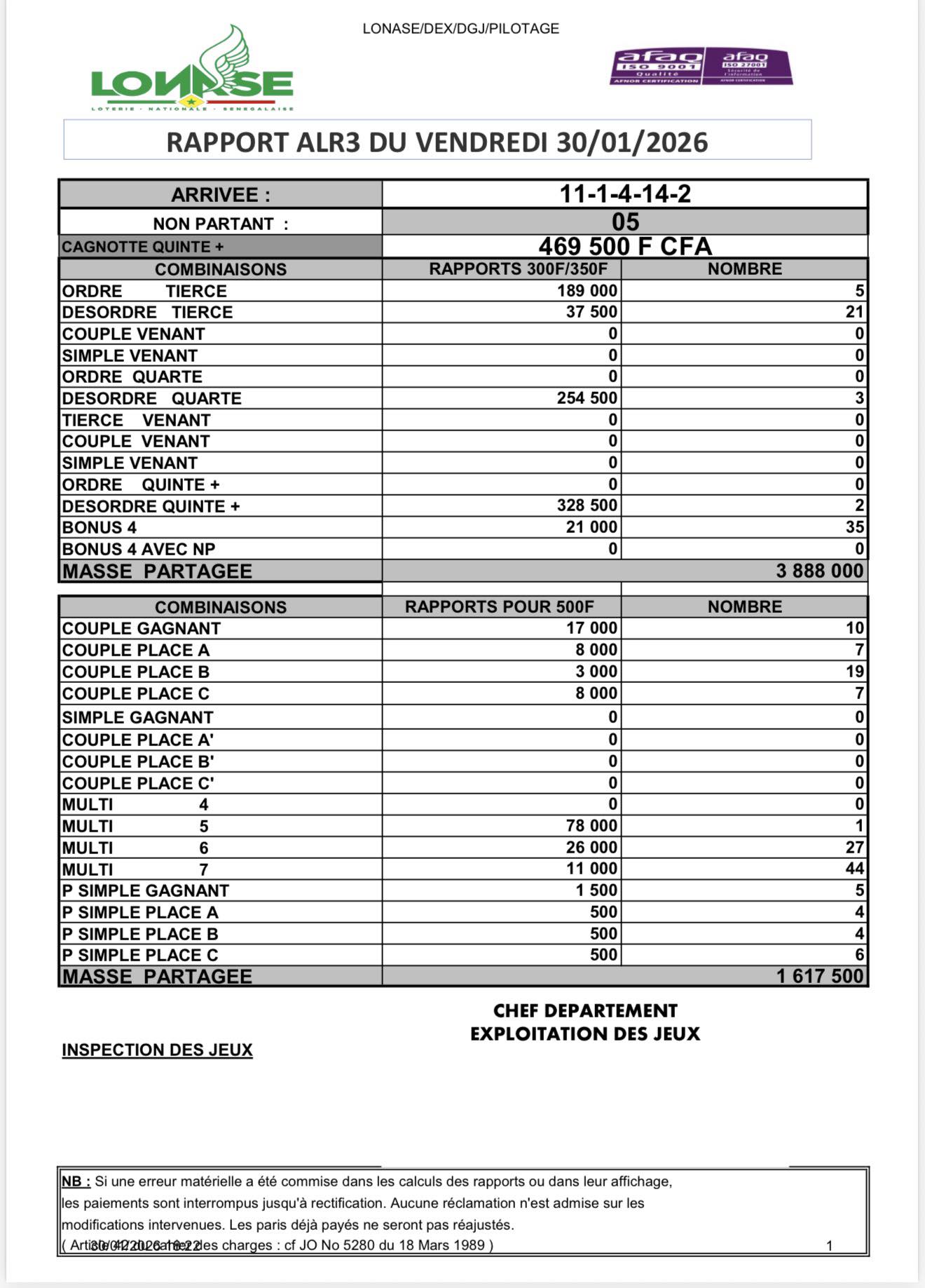 Arrivée alr3 du 30-01-2026 : 11-1-4-14-2