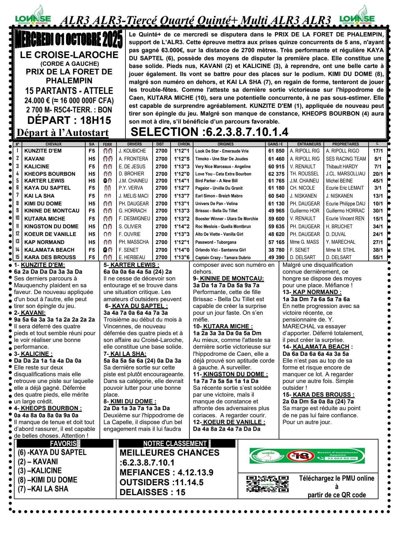 ARRIVEE ALR3 DU 01-10-2025 : cliquer ici pour voir les gains | |