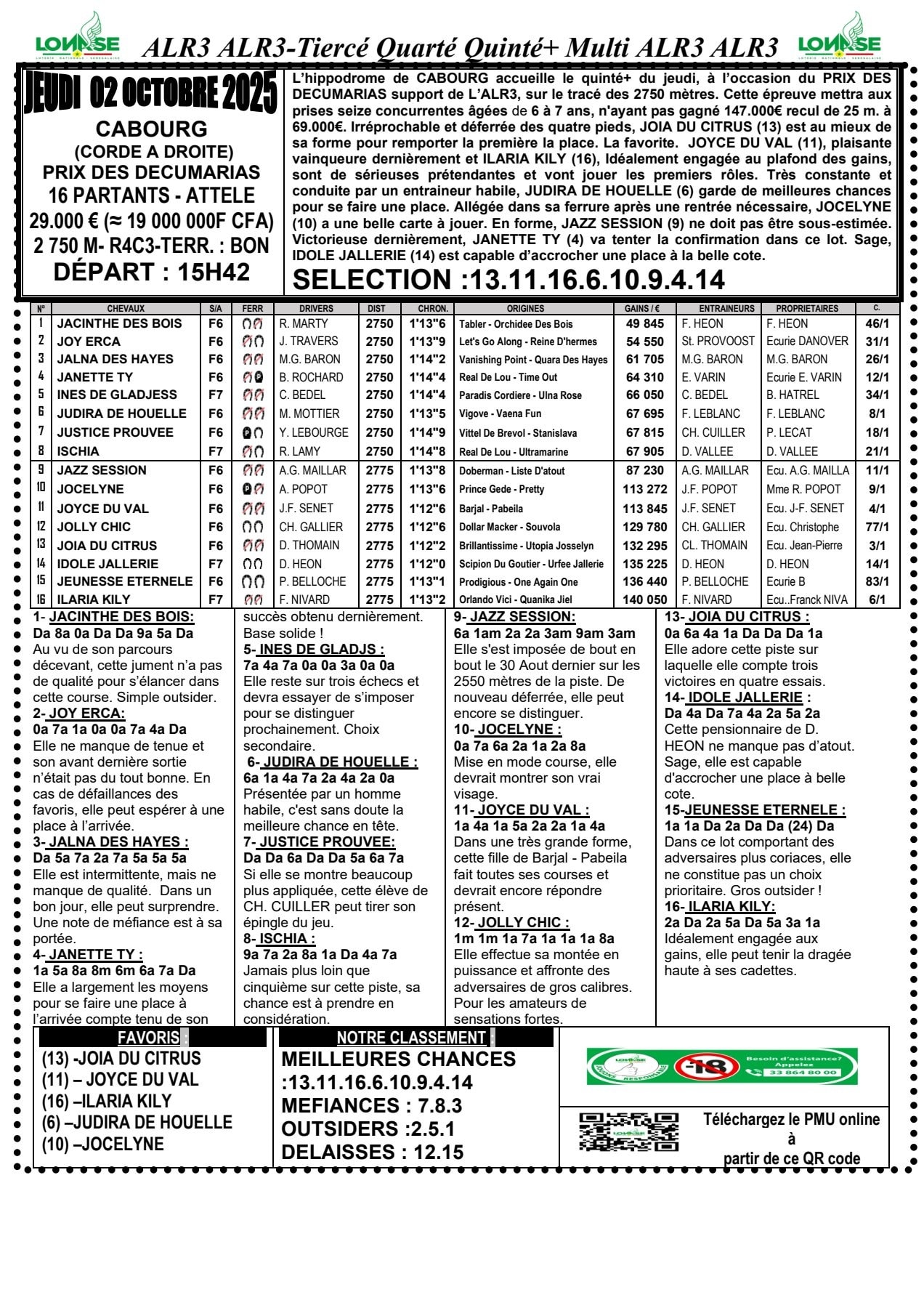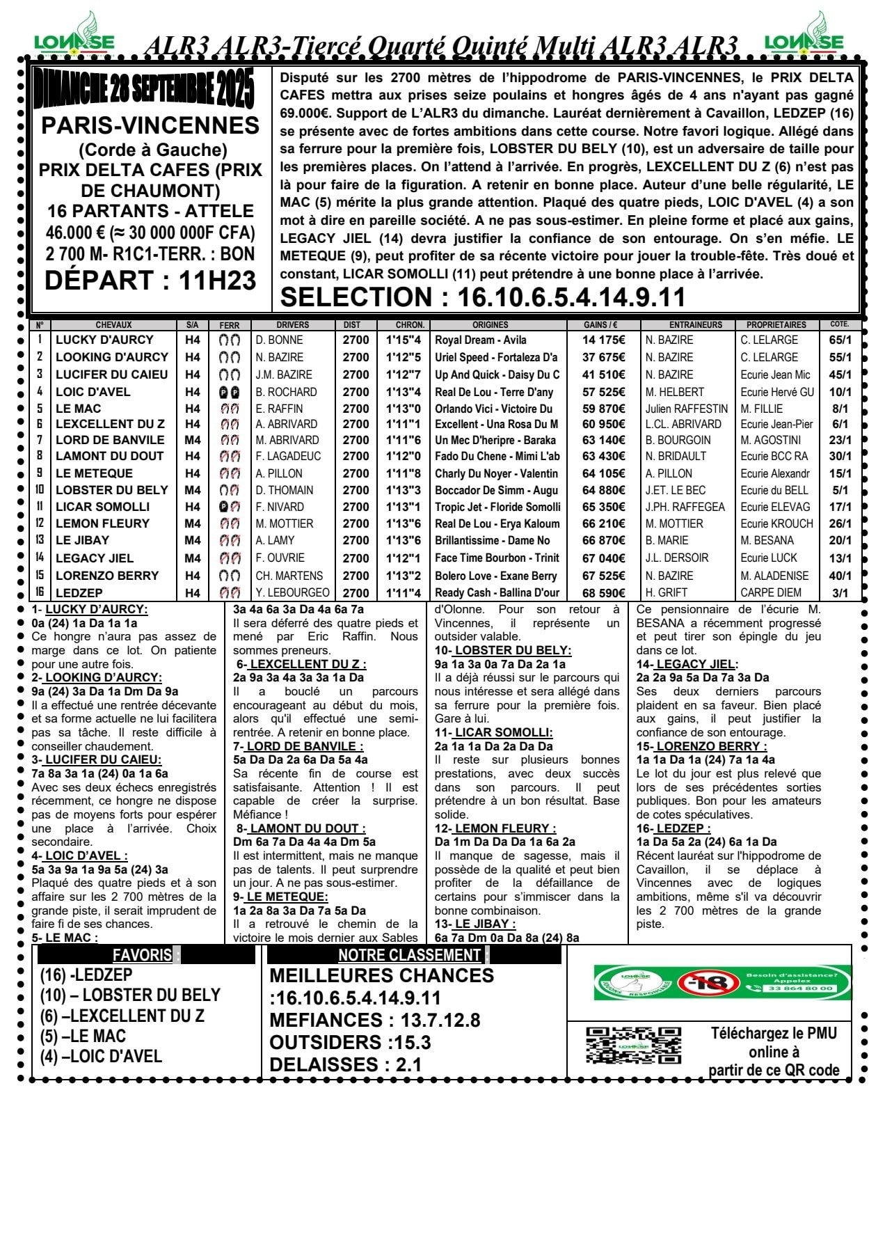 ARRIVEE ALR3 DU 29-09-2025 : cliquer ici pour voir les gains | |