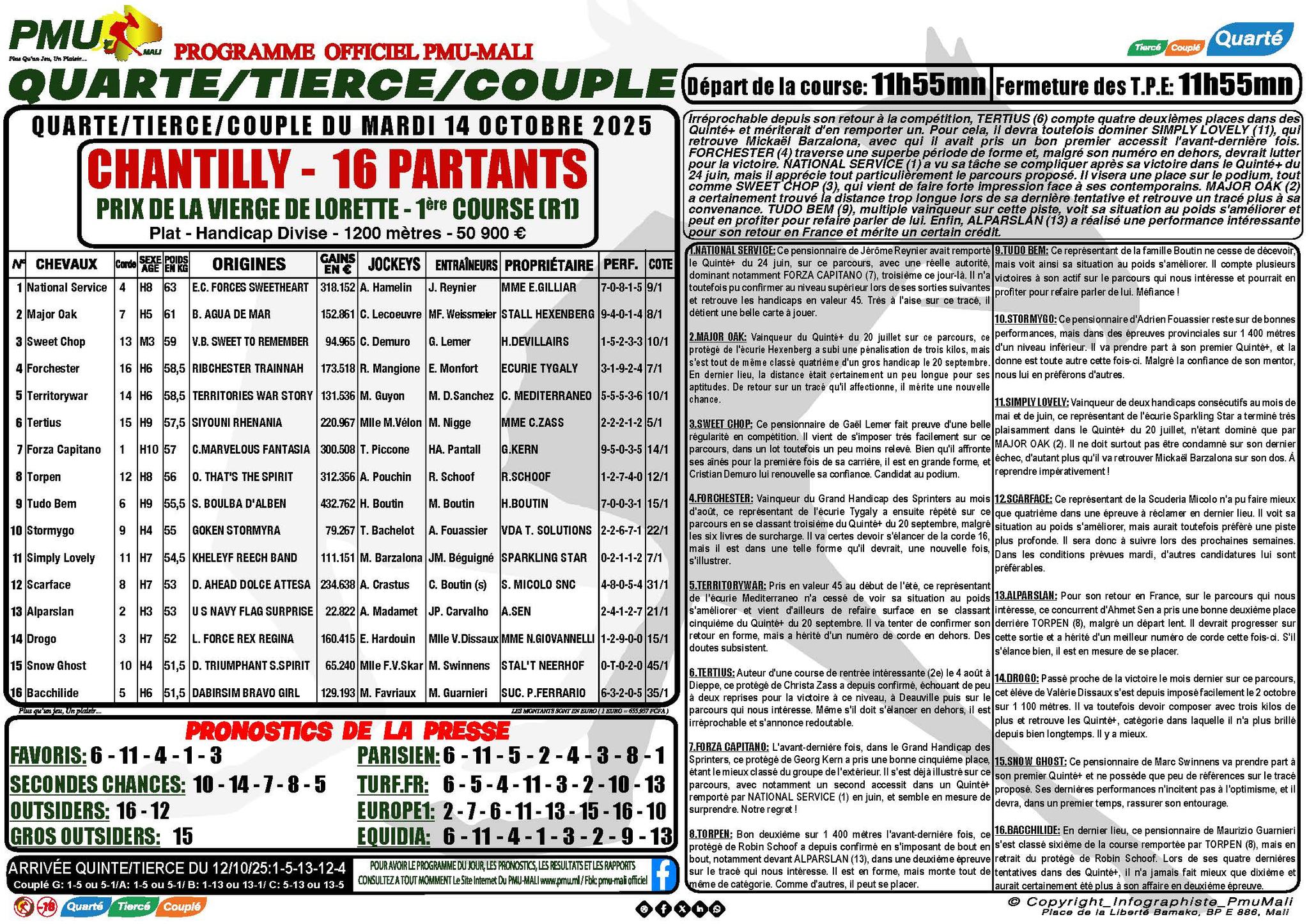 LES DETAILS, JOURNAUX DU PMU MALI DU 14-10-2025