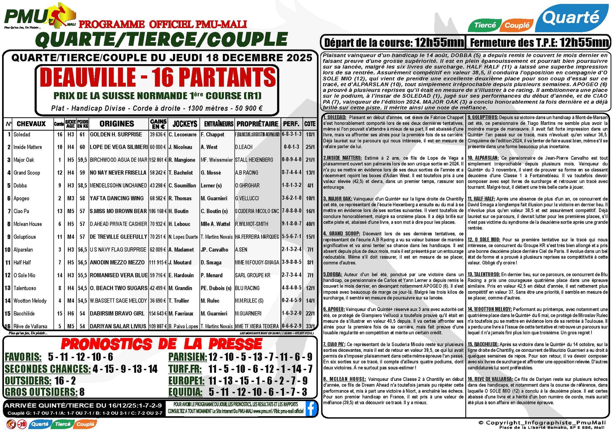LES DETAILS, JOURNAUX DU PMU MALI DU 18-12-2025