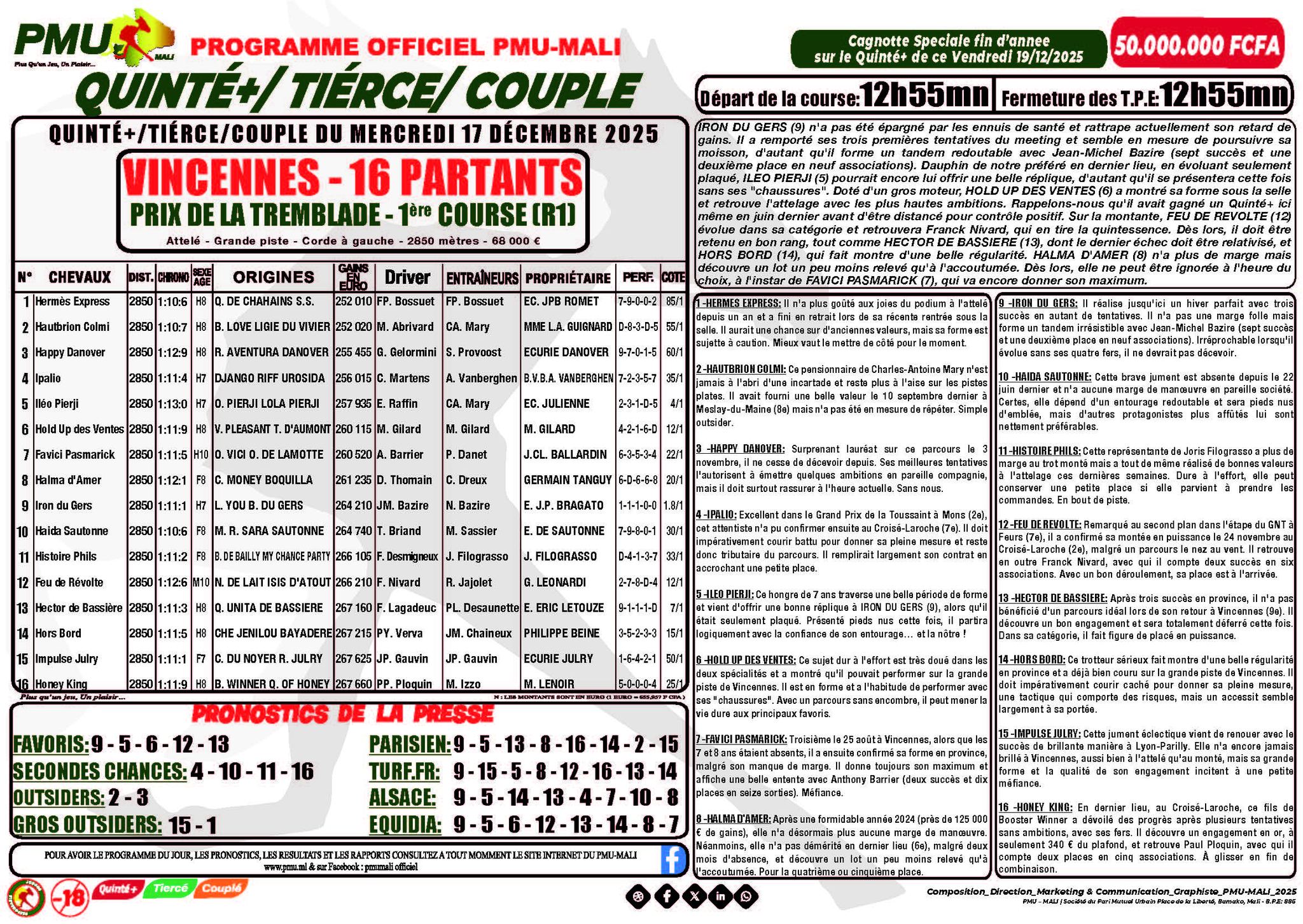 Journal hippique du quinté - pmu mali du 17-12-2025