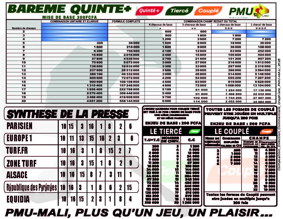 LES PRONOSTICS DU PMU MALI DU JOUR 23-12-2025