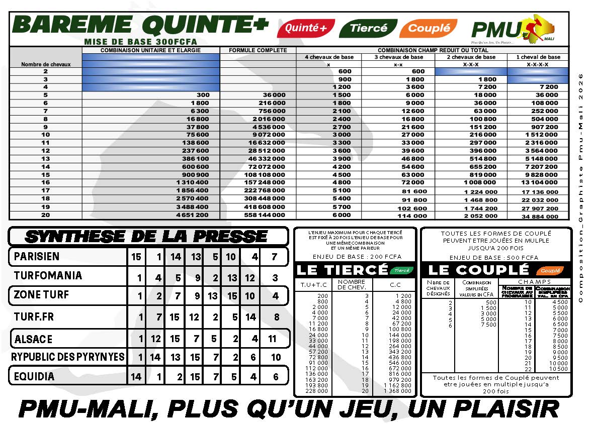 LES PRONOSTICS DU PMU MALI DU 05-01-2026
