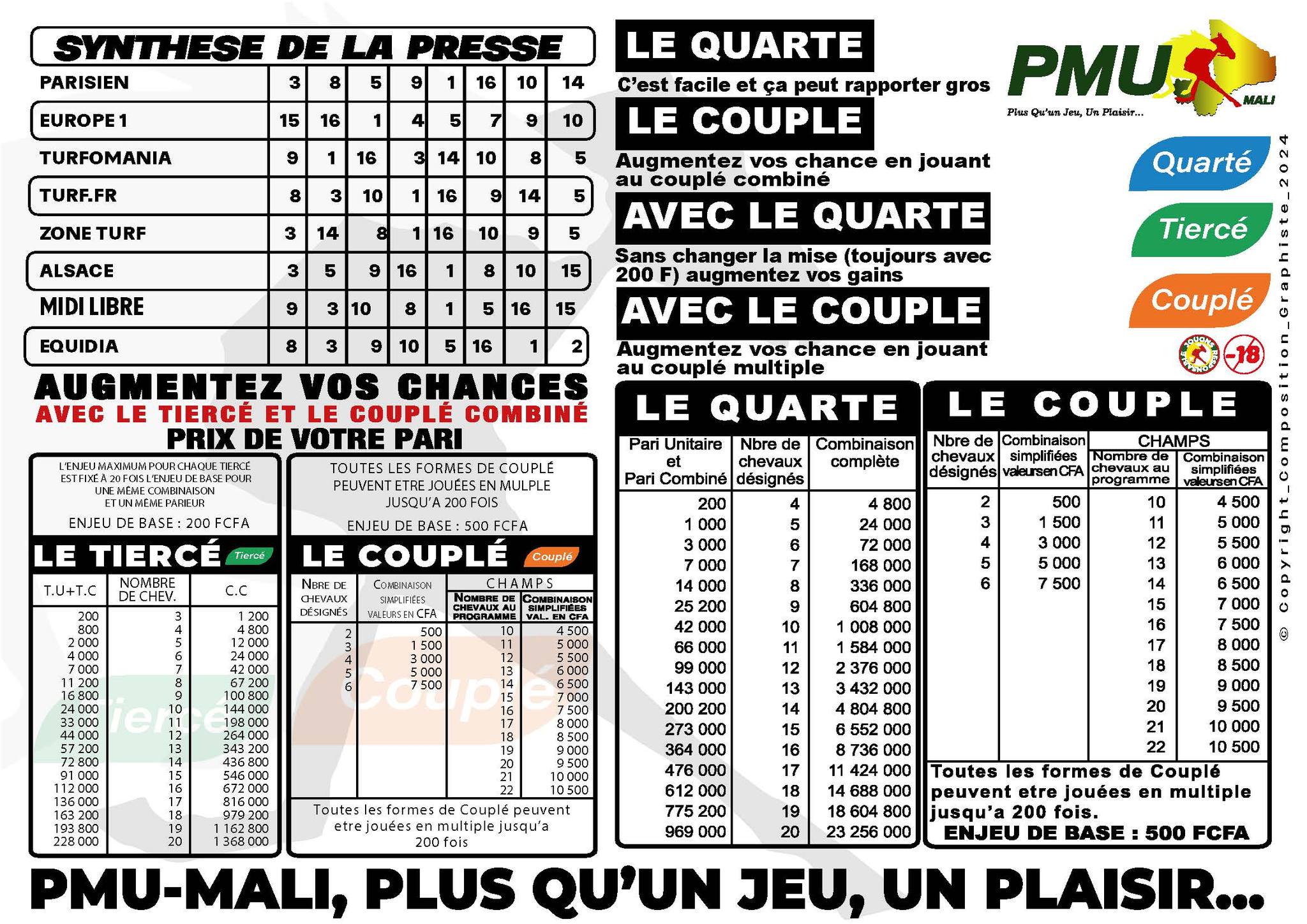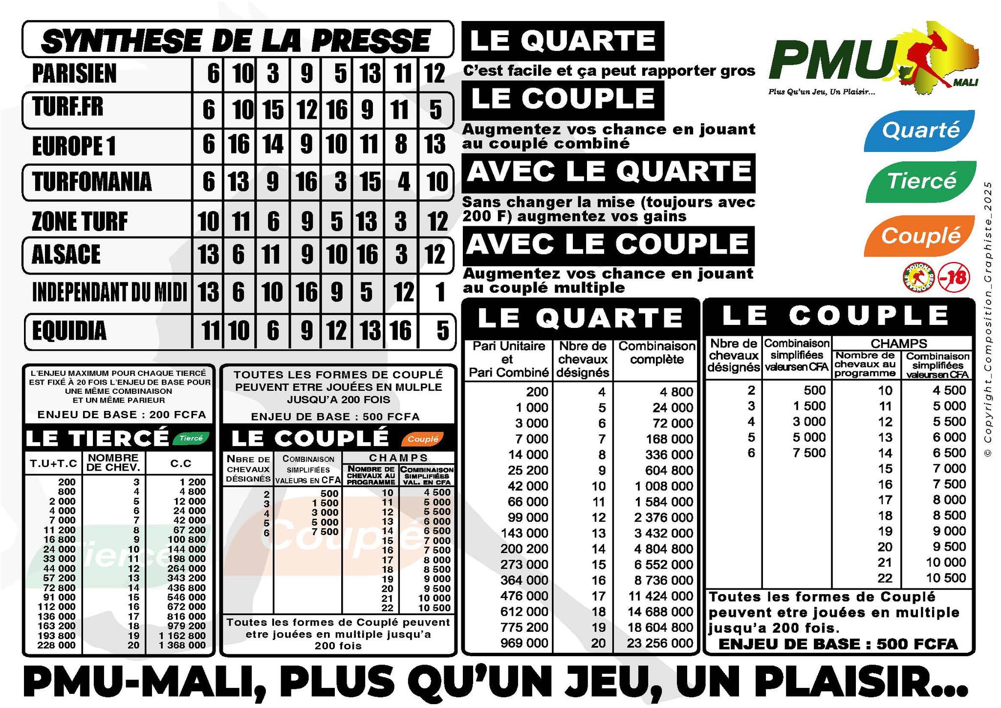 LES PRONOSTICS DU PMU MALI