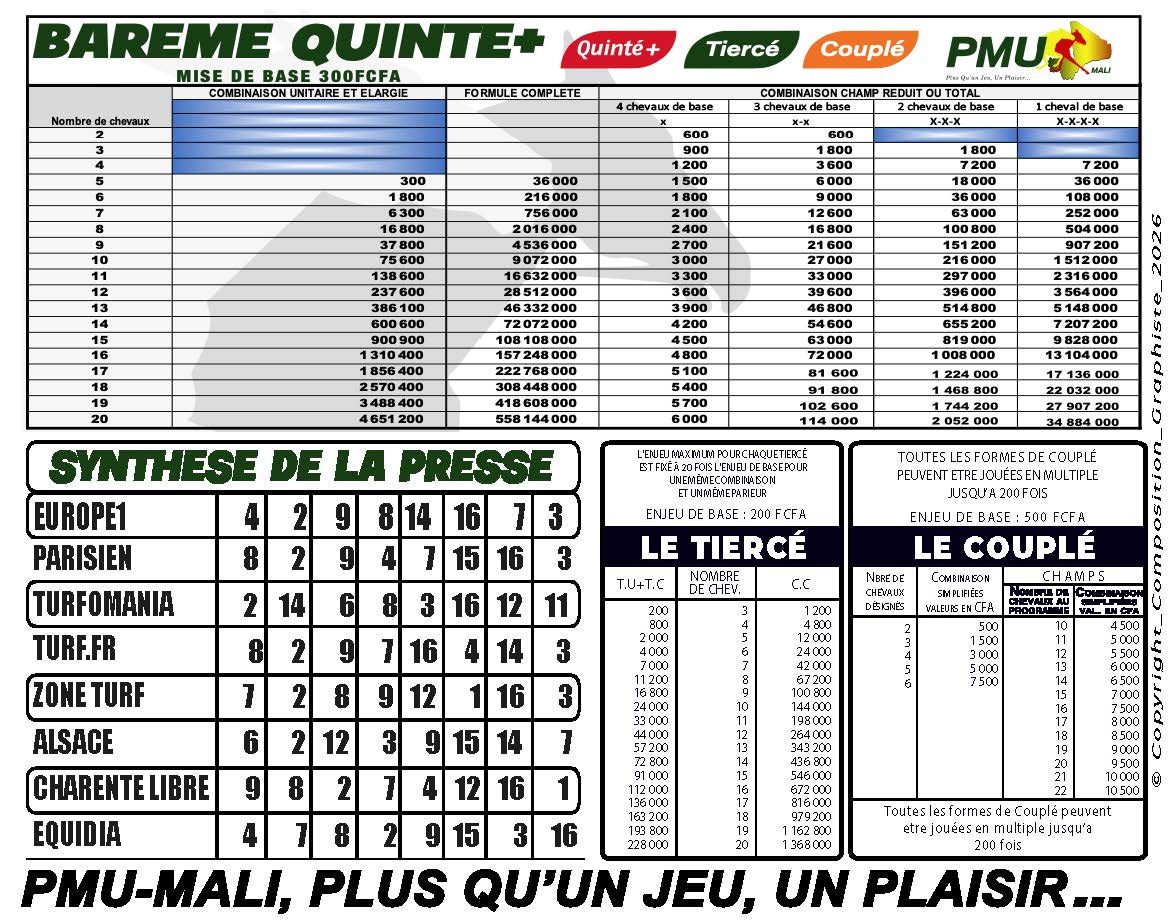 Pronostics du quinté - pmu mali du 06-01-2026